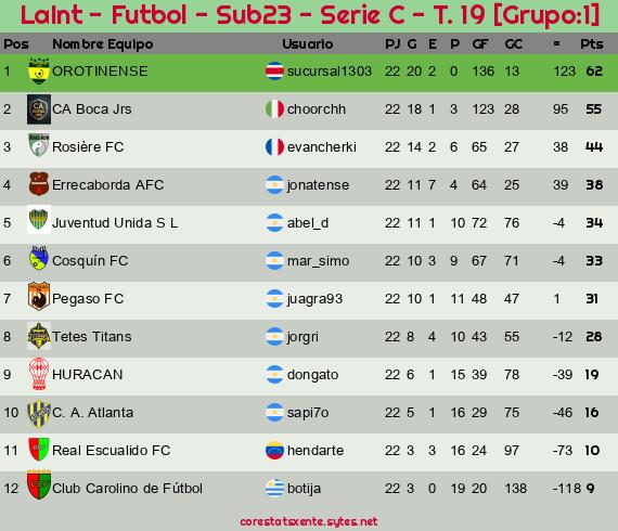 Widgets: LaInt - Futbol - Sub23 - Serie C - T. 19