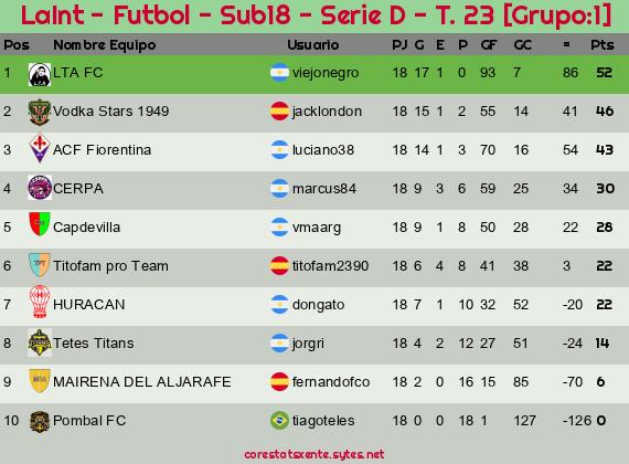 Widgets: LaInt - Futbol - Sub18 - Serie D - T. 23
