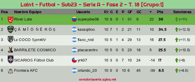 Widgets: LaInt - Futbol - Sub23 - Serie A - Fase 2 - T. 18