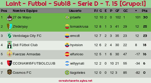 Widgets: LaInt - Futbol - Sub18 - Serie D - T. 15