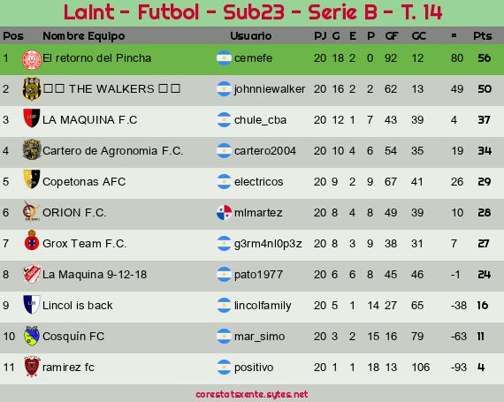 Widgets: LaInt - Futbol - Sub23 - Serie B - T. 14