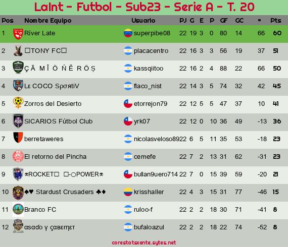 Widgets: LaInt - Futbol - Sub23 - Serie A - T. 20