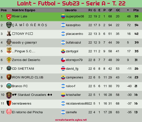 Widgets: LaInt - Futbol - Sub23 - Serie A - T. 22