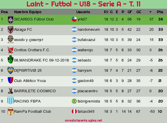 Widgets: LaInt - Futbol - U18 - Serie A - T. 11