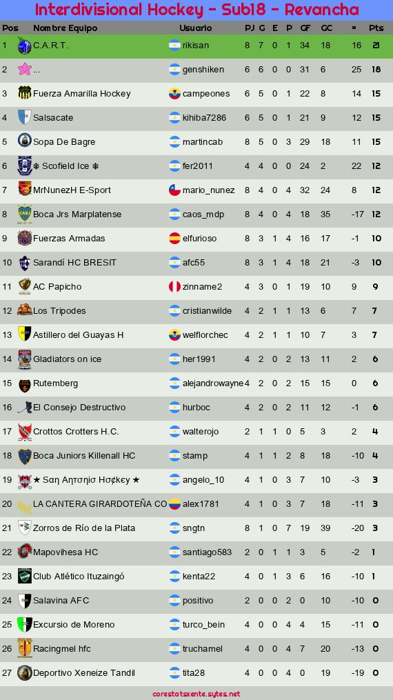 Widgets: Interdivisional Hockey - Sub18 - Revancha