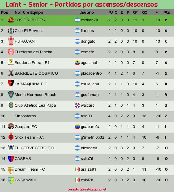 Widgets: Laint - Senior - Partidos por ascensos/descensos