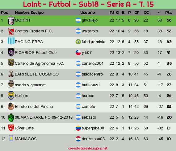 Widgets: LaInt - Futbol - Sub18 - Serie A - T. 15
