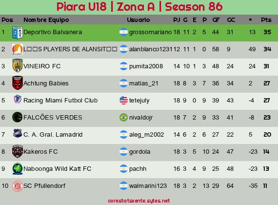 Widgets: Piara U18 | Zona A | Seaѕon 86