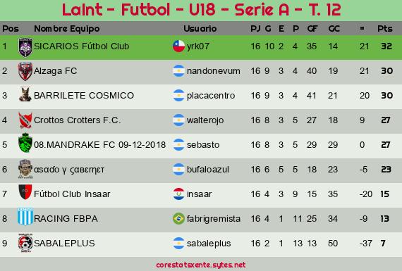 Widgets: LaInt - Futbol - U18 - Serie A - T. 12
