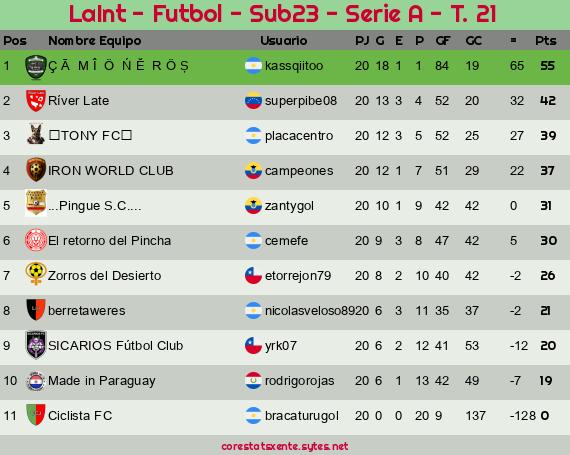 Widgets: LaInt - Futbol - Sub23 - Serie A - T. 21