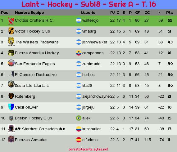 Widgets: LaInt - Hockey - Sub18 - Serie A - T. 16