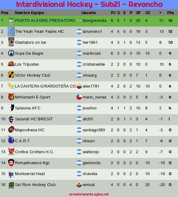 Widgets: Interdivisional Hockey - Sub21 - Revancha