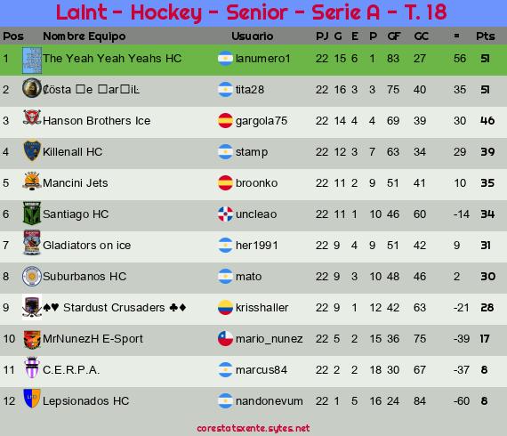 Widgets: LaInt - Hockey - Senior - Serie A - T. 18