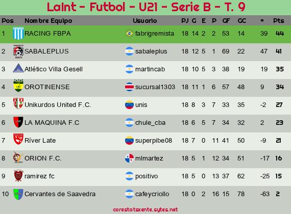 Widgets: LaInt - Futbol - U21 - Serie B - T. 9