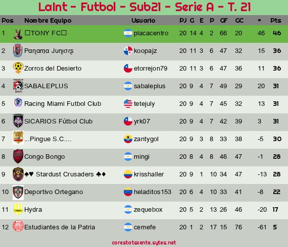 Widgets: LaInt - Futbol - Sub21 - Serie A - T. 21