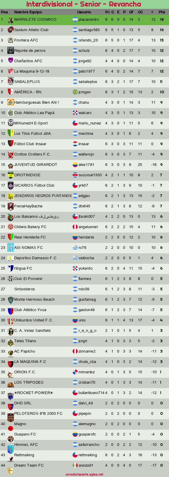 Widgets: Interdivisional - Senior - Revancha