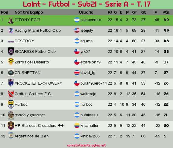 Widgets: LaInt - Futbol - Sub21 - Serie A - T. 17