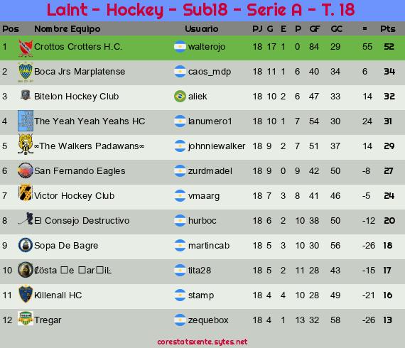 Widgets: LaInt - Hockey - Sub18 - Serie A - T. 18