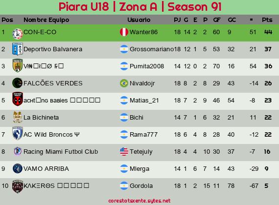 Widgets: Piara U18 | Zona A | Seaѕon 91