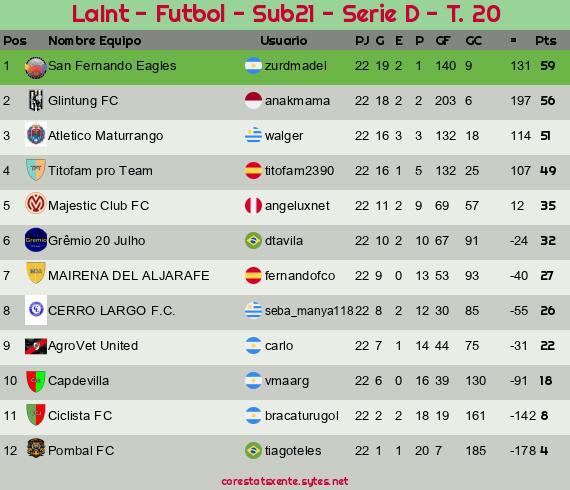 Widgets: LaInt - Futbol - Sub21 - Serie D - T. 20