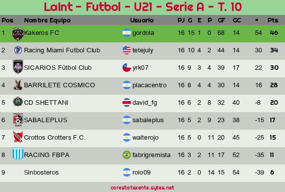 Widgets: LaInt - Futbol - U21 - Serie A - T. 10