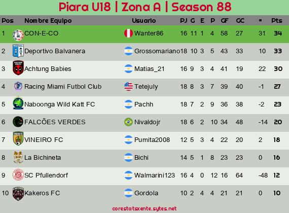 Widgets: Piara U18 | Zona A | Seaѕon 88
